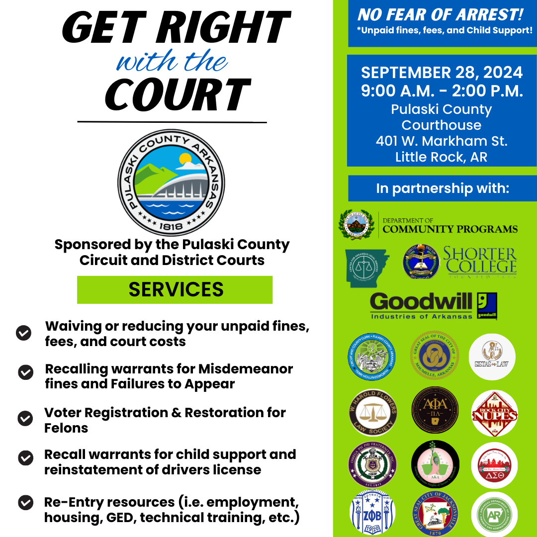 The Pulaski County Circuit and District Courts will be reducing or waiving unpaid fines, fees, and court costs on Saturday, September 28 from 9 a.m. to 2 p.m.