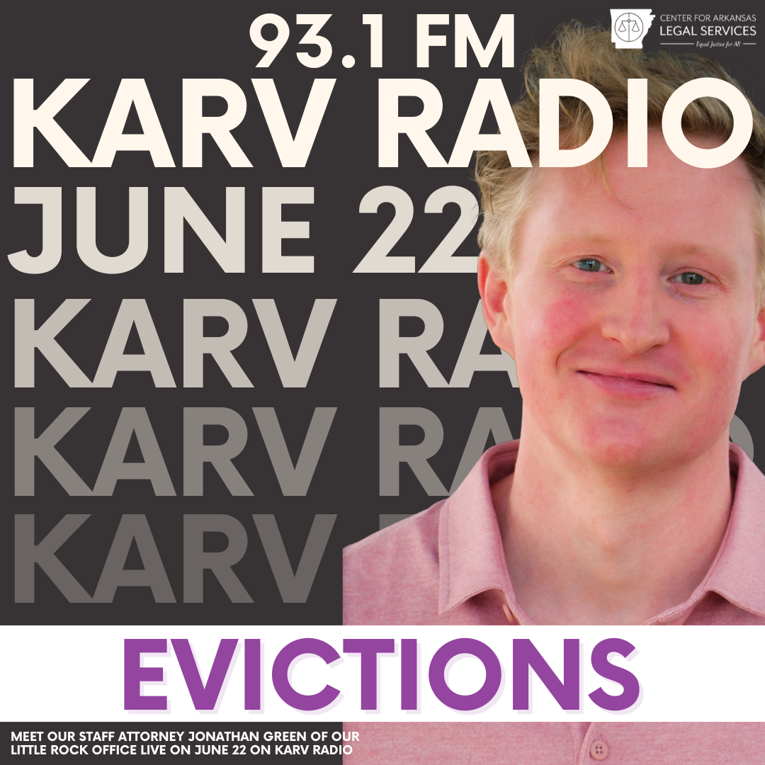 Tune in on June 22 at 7:45 am as we discuss "Evictions" with Staff Attorney Jonathan Green and KARV "Regional Radio" (93.1 FM) host Johnny Story.