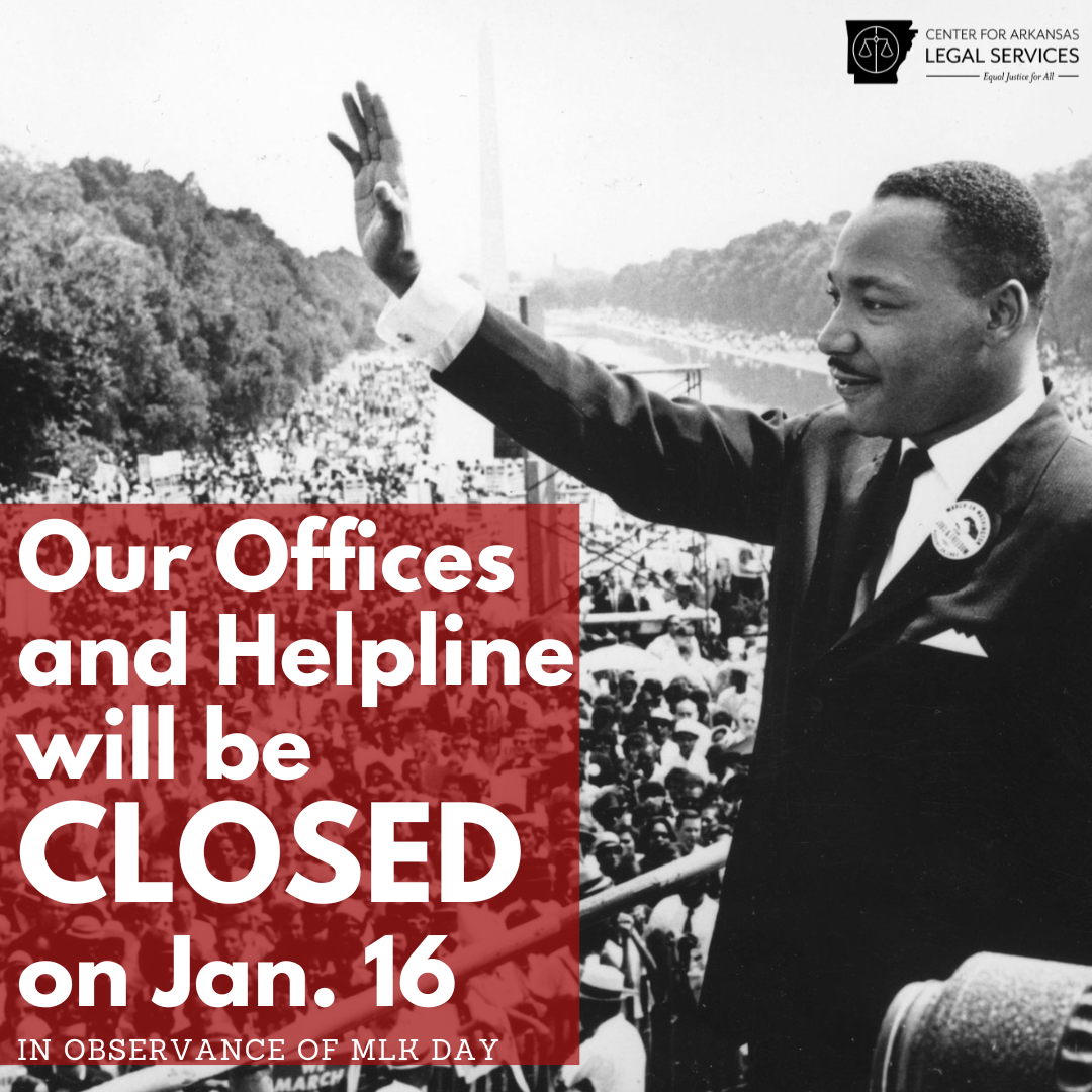 Our offices and Helpline are closed on Jan. 16 in observance of the Federal Holiday, Martin Luther King Jr. Day.