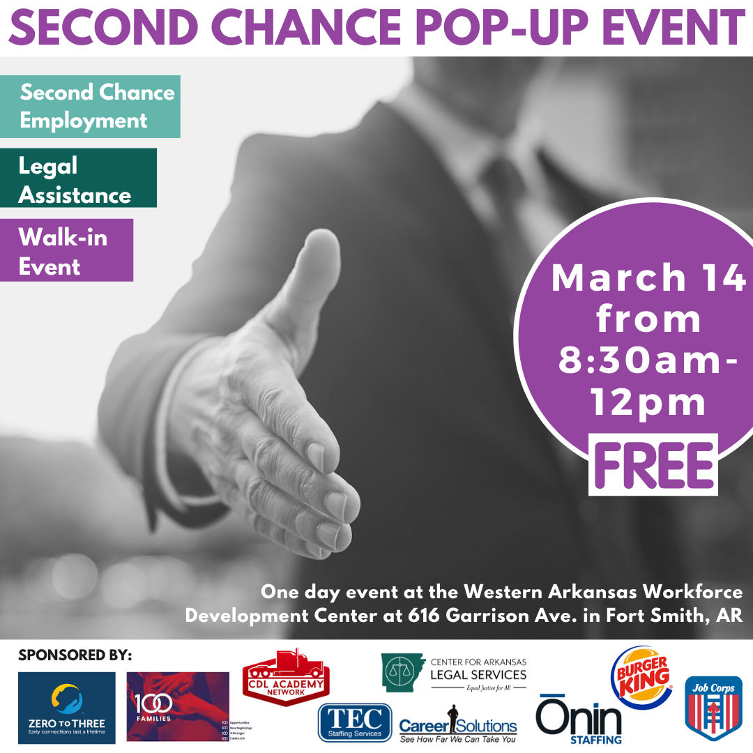 Second Chance Pop-Up Event: Join us on March 14 from 8:30 am- 12 pm for Second Chance Employment Opportunities and FREE legal assistance for civil (non-criminal) needs.