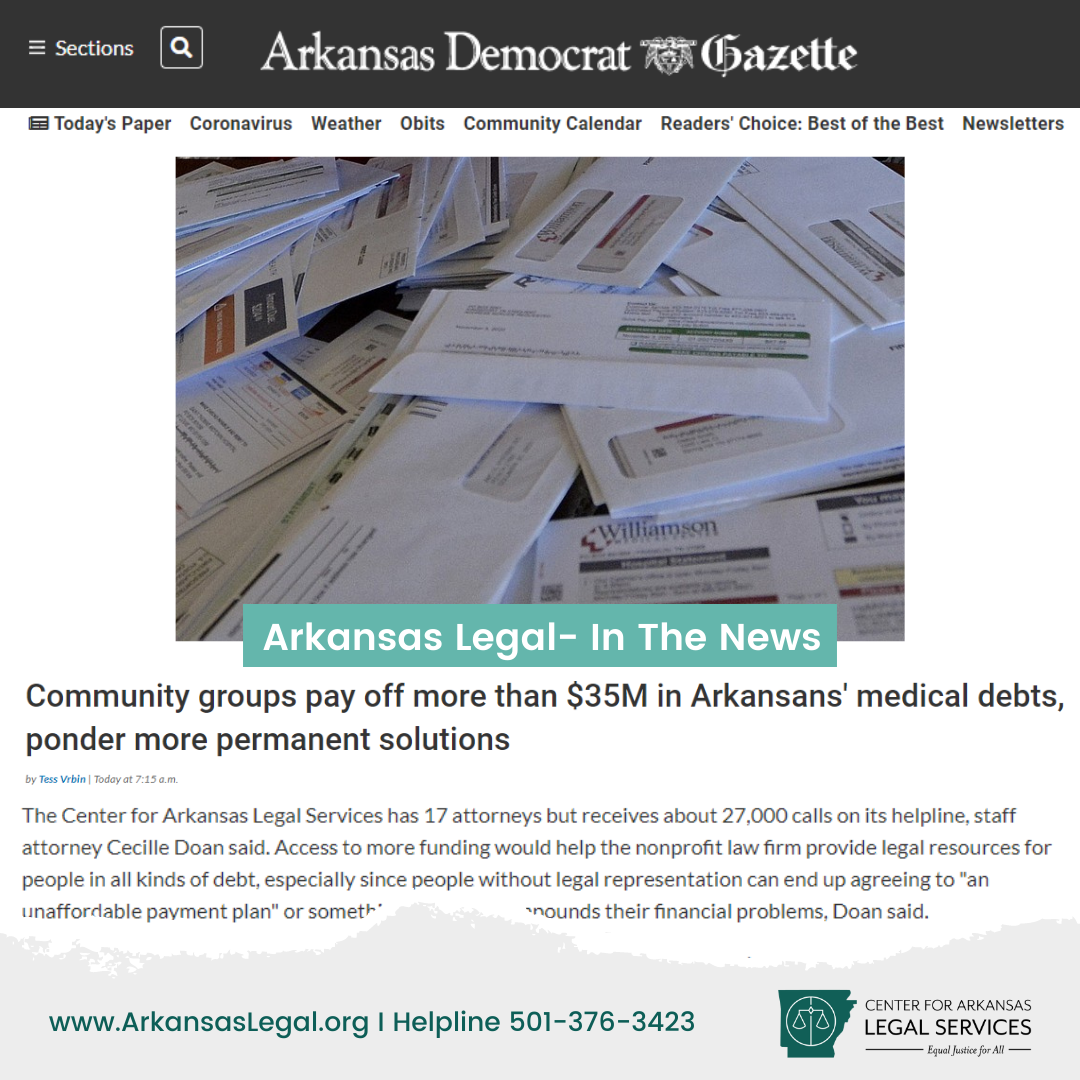 The Center for Arkansas Legal Services also offers an in-person “help desk” at the Riverview Hope Center Campus from 9 to 11:30 a.m. on the first and second Mondays of each month.