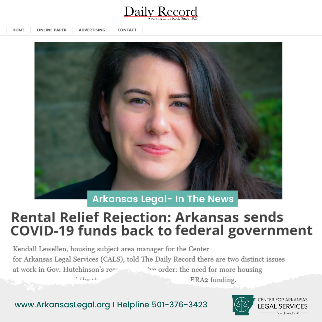 If homeowners are still facing foreclosure or related issues (some homes do not have a government-backed mortgage), they can call our Helpline at 501-376-3423 and we can try to work with them,” said Kendall Lewellen, attorney and housing group leader for the Center for Arkansas Legal Services (CALS)…..
